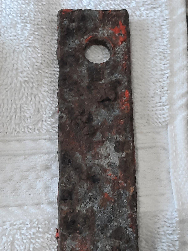 A copper base metal ring with silver residue. No